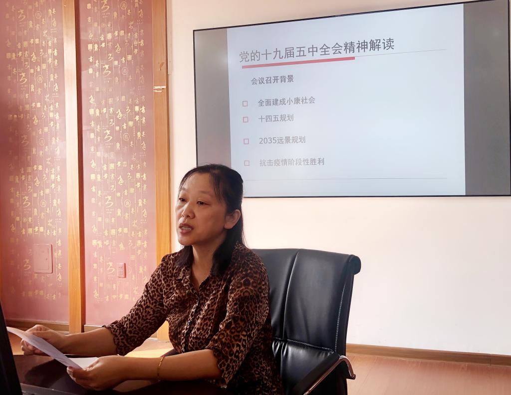 会上,学院党委书记方晓春作了题为《党的十九届五中全会精神解读》的专题报告,从会议召开背景、内容、意义、对党建理论新发展等方面对大会精神进行了全面解读。学院党委副书记兼纪委书记胡佳传达了上级有关党风廉政建设工作的文件、指示精神和有关制度规定,传达了学校纪委在近期各次会议、培训和各类通报中重点强调的有关党风廉政的事项。全体与会人员在认真聆听后还集体学习了学院党委理论学习中心组印制的学习资料。