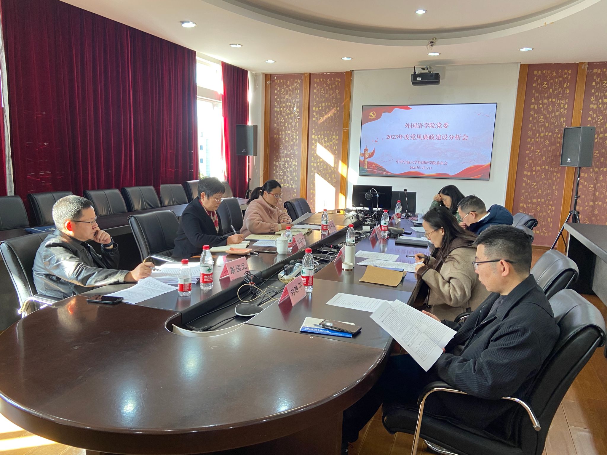 分析会上,学院党委书记翁华星对上一年提出的具体意见落实情况进行“回头看”,汇报了针对这些问题做出的改进举措和成效,同时汇报了学院2023年党风廉政建设和“清廉外院”建设的总体开展和推进情况。随后,每位领导班子成员汇报了“一岗双责”履行情况,并就职责分工范围内的党风廉政建设情况,特别是廉政风险点及防控情况进行了分析。最后,党政班子成员讨论提出了2024年学院党风廉政建设中需要进一步强化和改进的问题,并针对这些问题讨论确定了措施任务、责任领导、责任人员和落实时限。