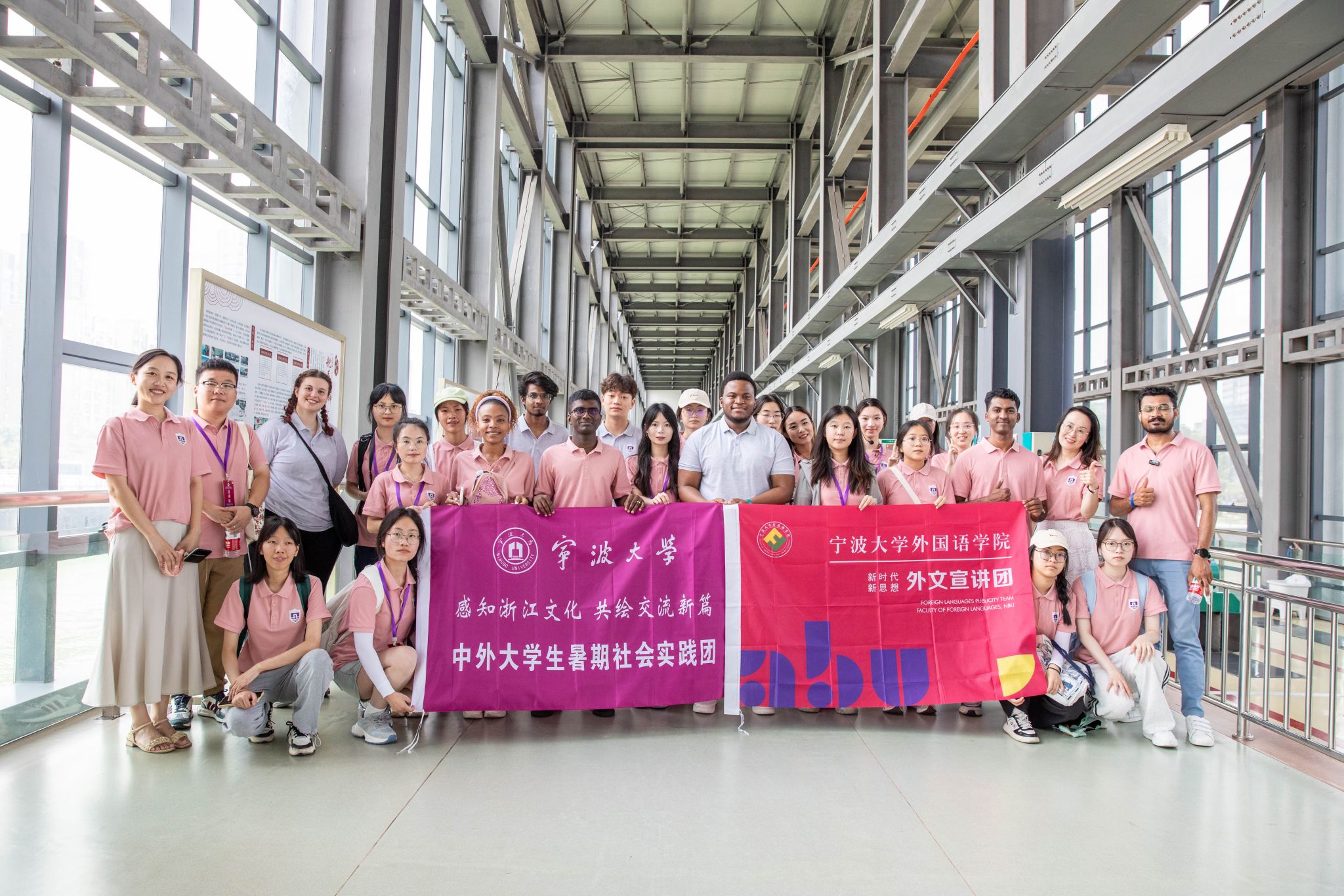 外文宣讲团成员共20余人组成的“感知浙东文化 共绘交流新篇”中外大学生暑期社会实践团赴姚江大闸和中国港口博物馆参观学习,深度了解宁波治水文化和港口文化。