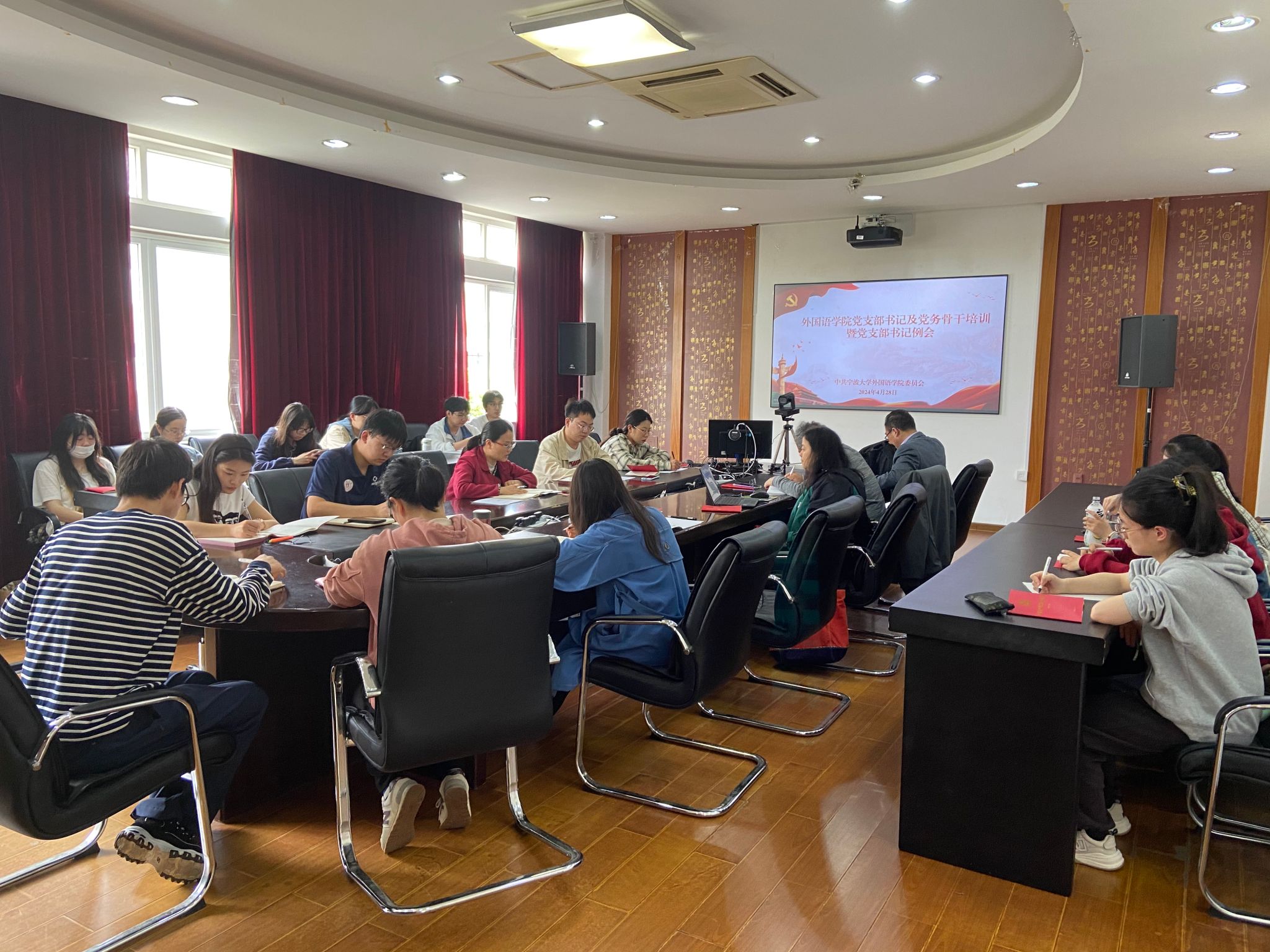 428日下午,性吧 党委召开党纪学习教育专题学习会,学院党委负责人、各师生党支部书记及支部委员参加会议。