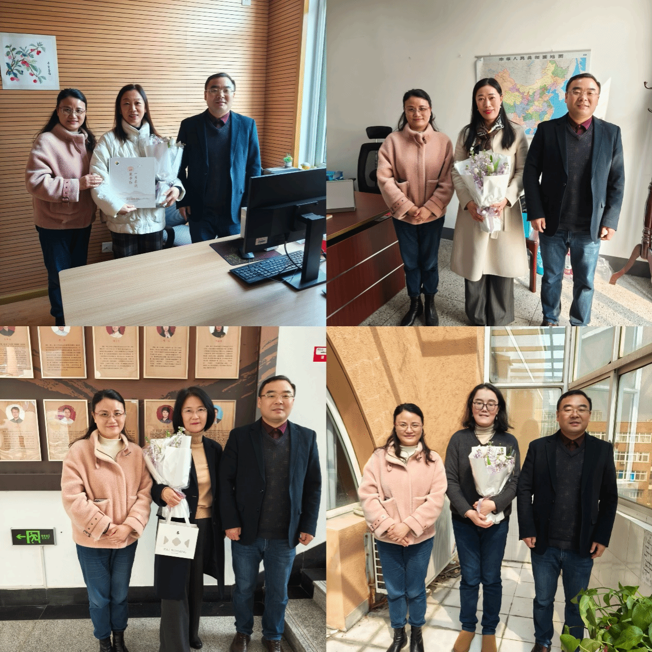 3月7日上午,学院党委书记翁华星、学院分工会李昌标主席和金巧英老师专程前往梅山校区看望慰问大学外语部全国巾帼文明岗一线女教师代表,送上精心准备的礼物与鲜花,并向全体女教师致以诚挚的节日祝福。
