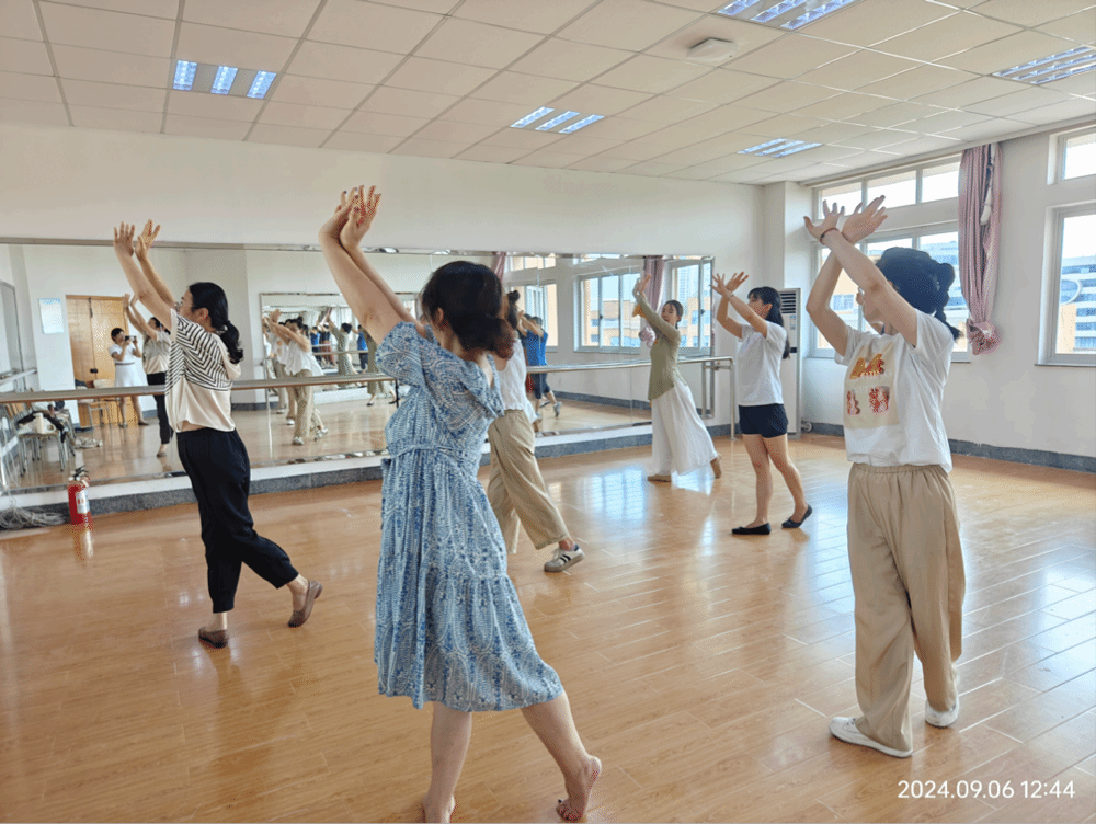 正所谓“南国有佳人,轻盛绿腰斯”,古典优雅的民族舞蹈是文明的传承、是融在中华儿女血脉里的自信,为了保证此次活动的顺利进行,女教职工们也做了充足的准备,虽然大家都是第一次跳古典舞,但是都拿出了最好的状态来参加此次活动。