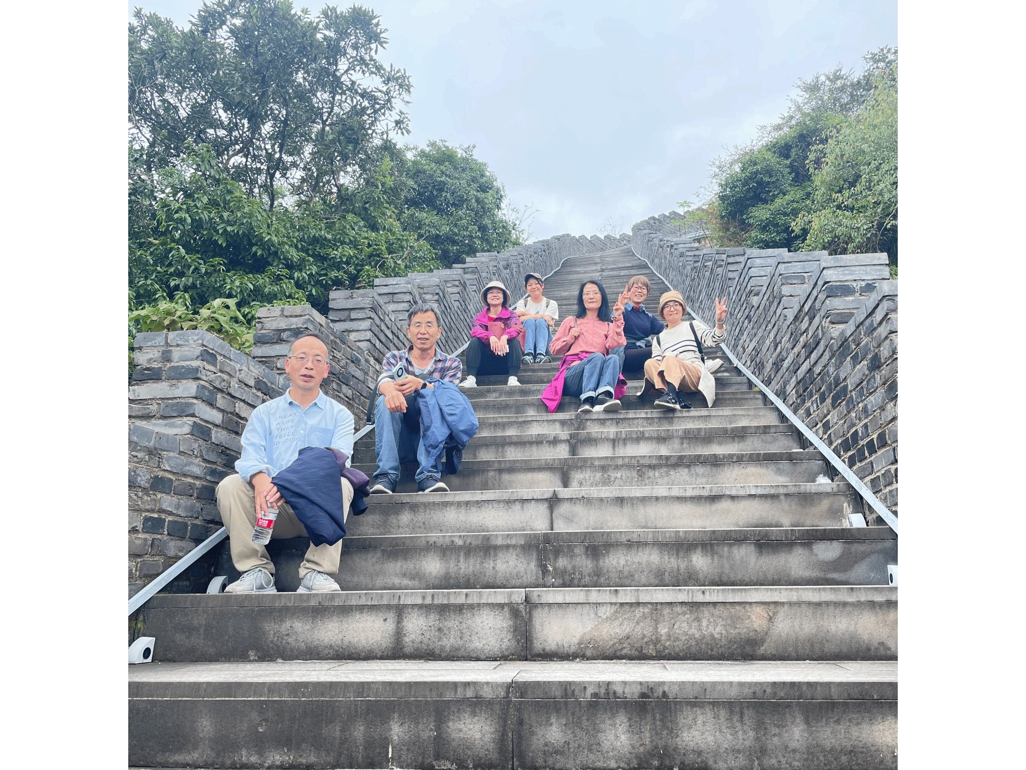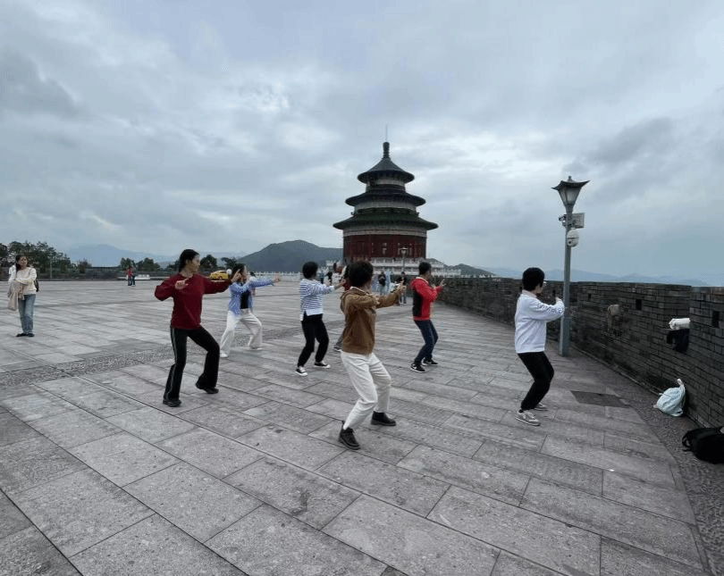 步入公园,仿佛踏入了一幅流动的山水画卷。沿着蜿蜒的小径,穿梭于葱郁的林间,每一步都踏出了与自然的亲密对话。秋风拂面,带着丝丝凉意,却也吹散了心中的烦恼,只留下对生活与自然的热爱。登上山顶平台后,老师们一同练习打八段锦。大家动作整齐划一,呼吸与动作协调一致,完美融入了周身的自然风景。行进中,老师们彼此鼓励、相互帮扶,在亲近自然的同时彰显了女性之间的温情与互助。