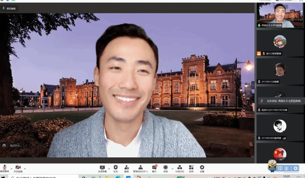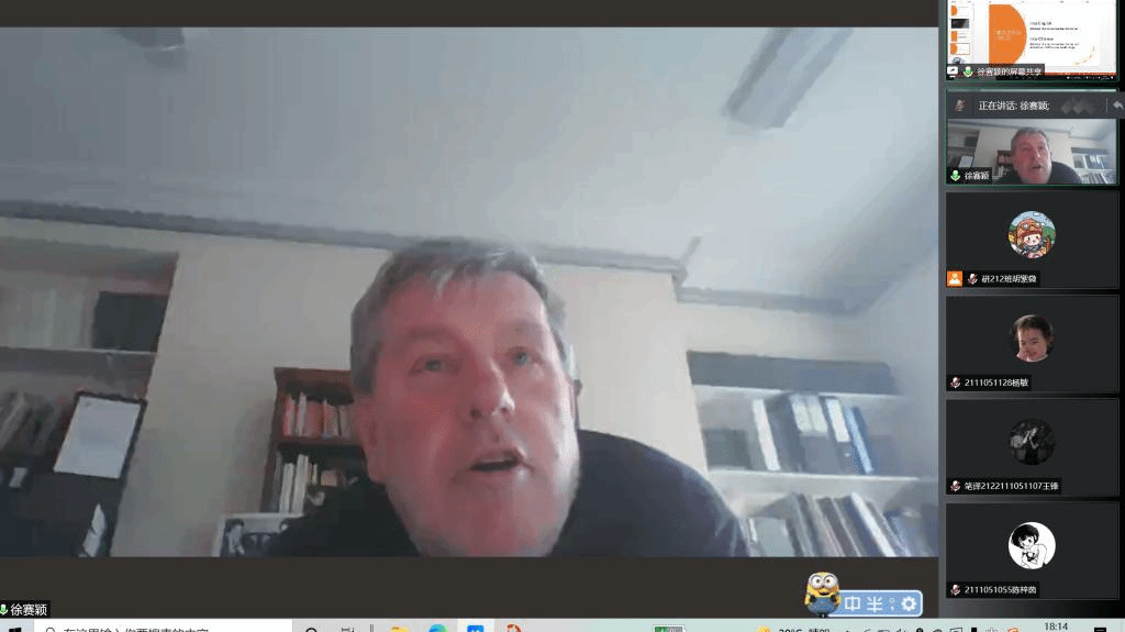 特别邀请到英国贝尔法斯特女王大学翻译学教授、口笔译中心主任David Johnston教授以及女王大学国际办公室处国际合作主管冯艺老师以腾讯会议的形式,为性吧