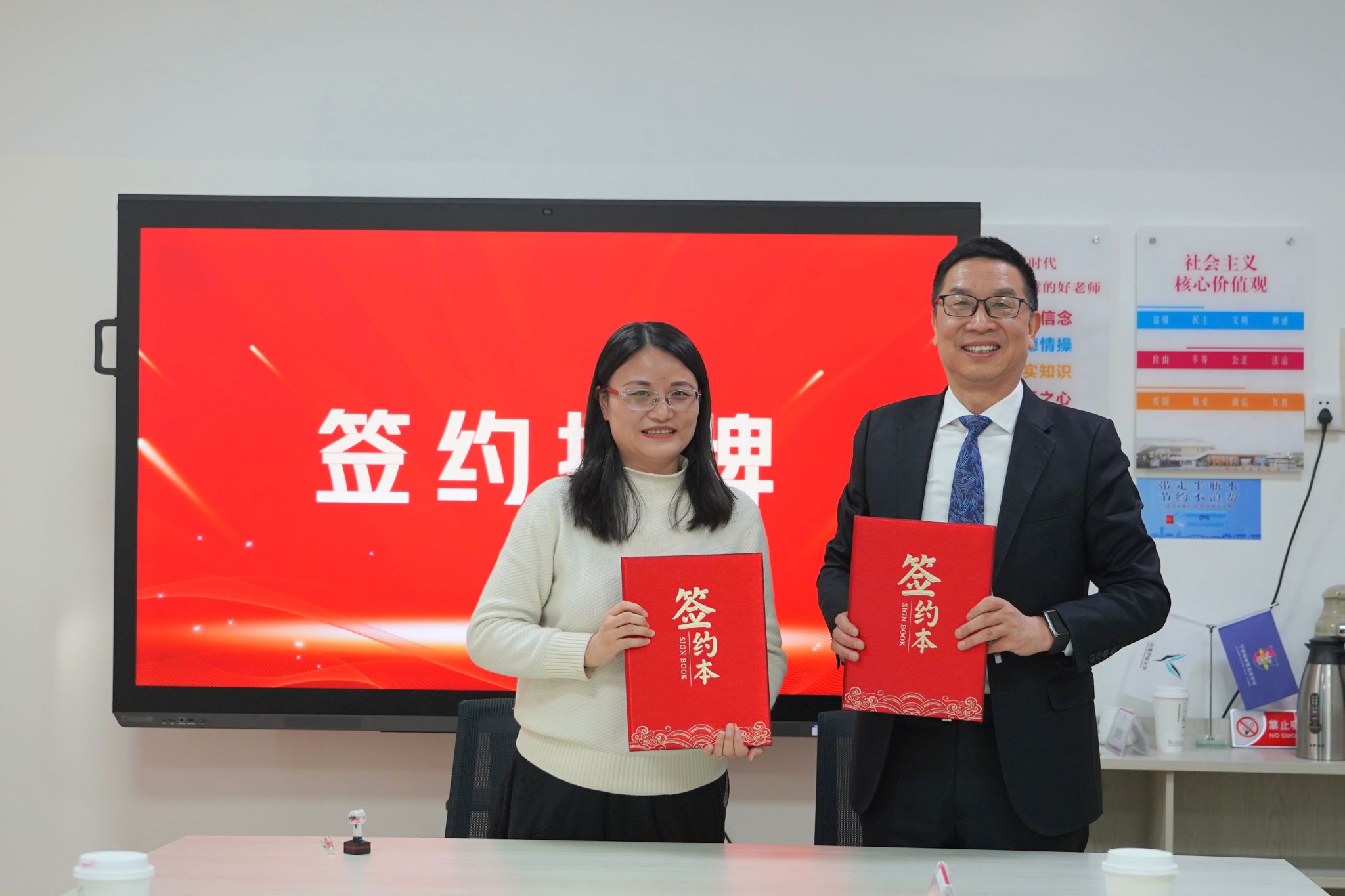 党委书记翁华星与宁波市镇海赫威斯肯特学校校长徐未华签署战略合作协议,并进行授牌仪式。