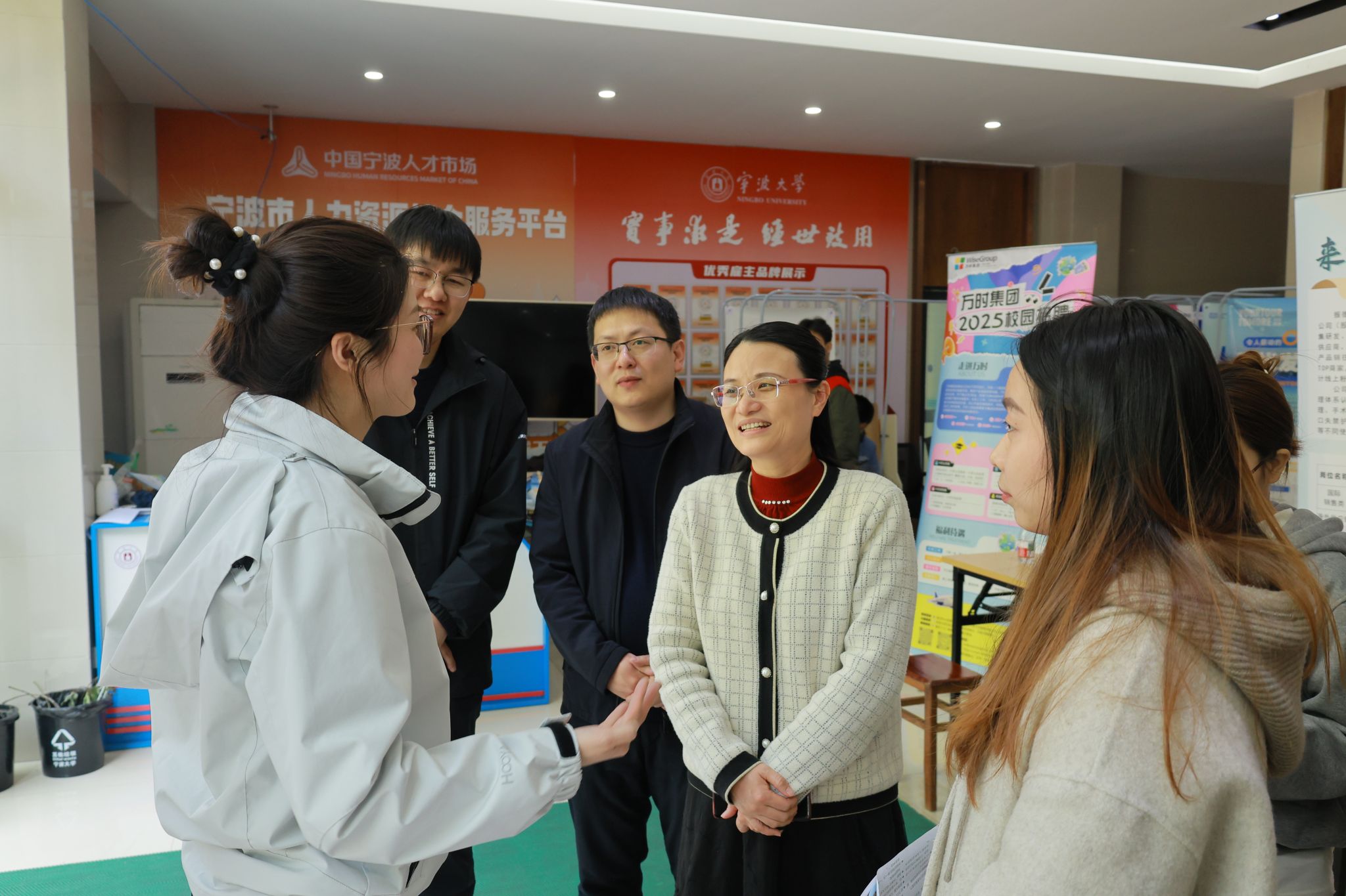 学生工作负责人冯能跃、就业辅导员檀学敏与多家企业代表进行深入交流。在交谈中,老师们细致了解当前的市场情况、各行业的发展趋势以及企业对外语人才的需求。同时,老师们特别关心学院毕业生的就业情况,主动为现场的毕业生提供就业指导。