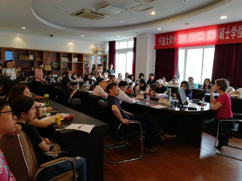 之后,冯·弗洛图教授于上午和下午分别作了两场学术报告。上午的学术报告题目是“后实证主义时代的翻译教学法与翻译伦理”(Translation Pedagogy and Ethics: How 'post-positivist' translation theories affect training and ethics of translation)。她梳理了后实证主义的相关理论,并以Walter Benjamin和Andre Lefevere举例说明了后实证主义的主要观点与传统等效原则相悖。由此她指出,从这些理论的相关应用情况可以看出来,完全的等效翻译原则在现实翻译过程中并不适用;但对于翻译教学的发展还是具有启迪作用。在此基础上,冯·弗洛图教授进一步讨论了译者责任、译者专业道德素养以及译者训练等问题。