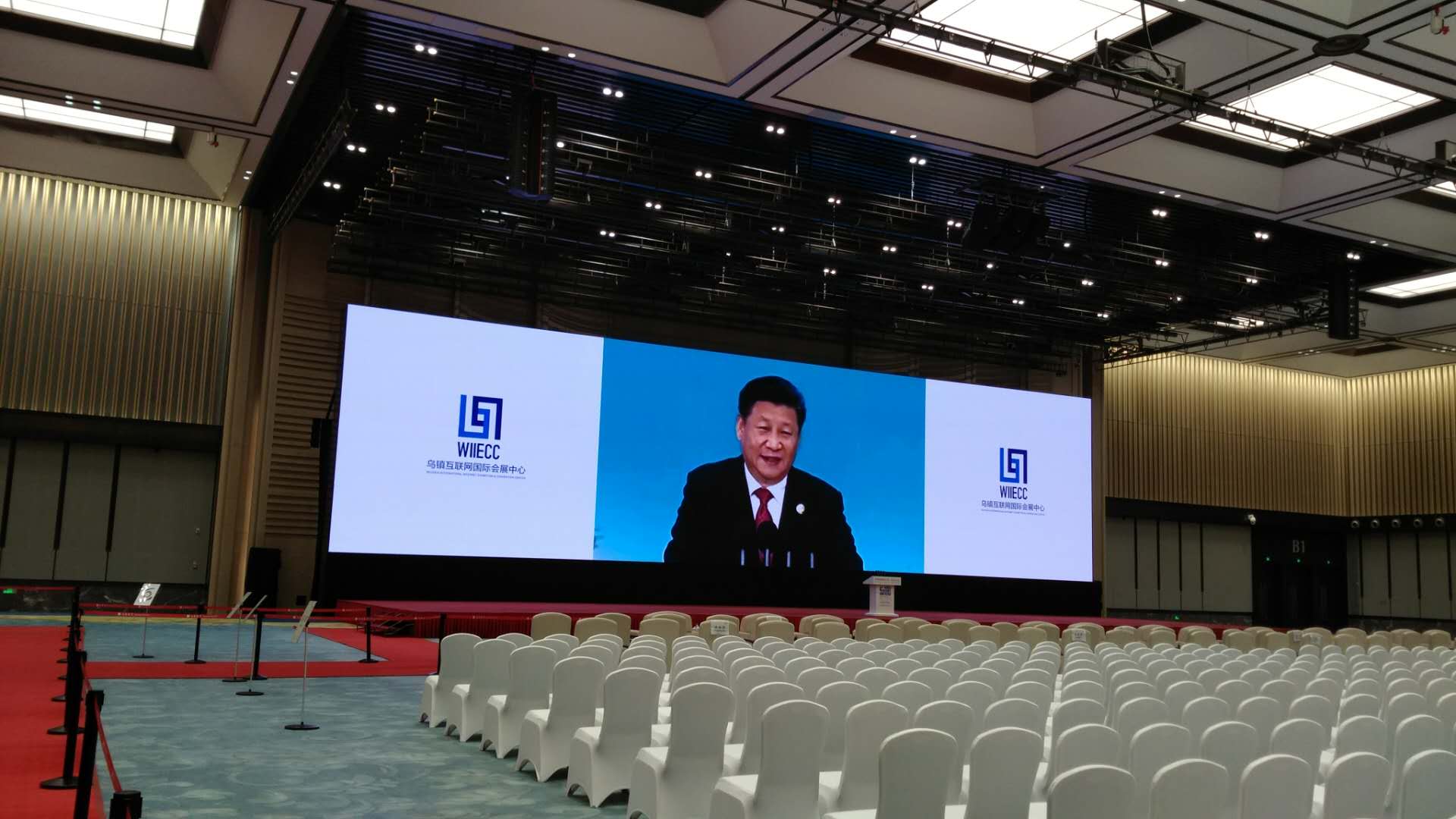 互联网国际会展中心是世界互联网大会召开的主要场馆,建筑面积8.1万平方米,分为会议中心、接待中心和展览中心三部分,于2016年10月完工,2017年4月正式对外开放。中心由中国美院教授王澍先生领衔设计,建筑风格充分考虑互联网元素、中国传统文化及江南水乡特色。
