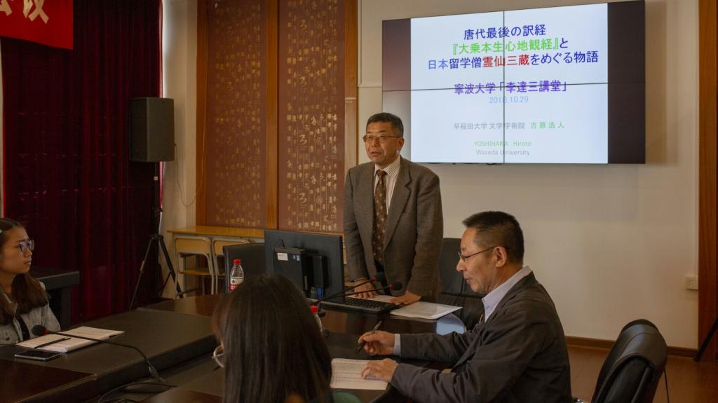“李达三讲堂”(第四十四讲),在李达三外语楼422会议室做了题为“唐代最后的译经《大乘本生心地观经》与日本留学僧灵仙三藏的故事”的学术讲座。讲座由李广志副教授主持,部分性吧