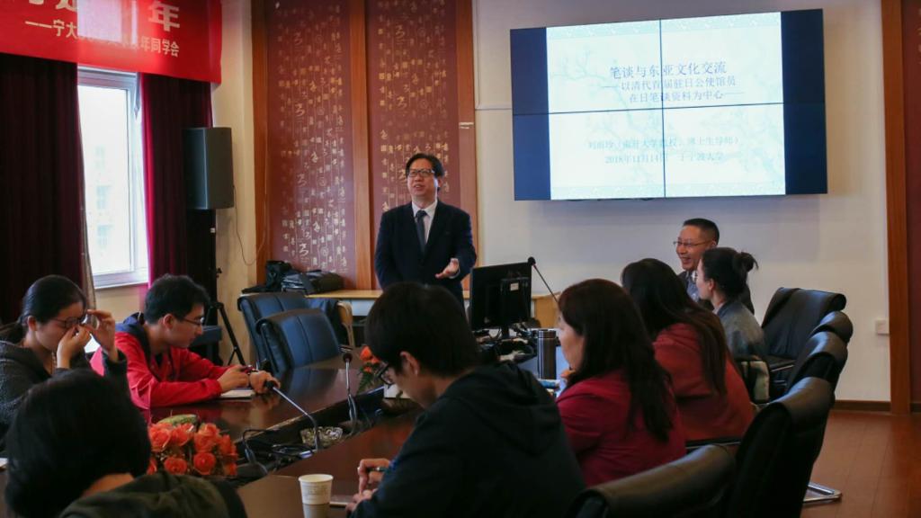 “李达三讲堂”(第四十五讲),于李达三外语楼422会议室做了题为“笔谈与东亚文化交流-以清代首届驻日公使馆员笔谈资料为中心”的学术讲座。性吧