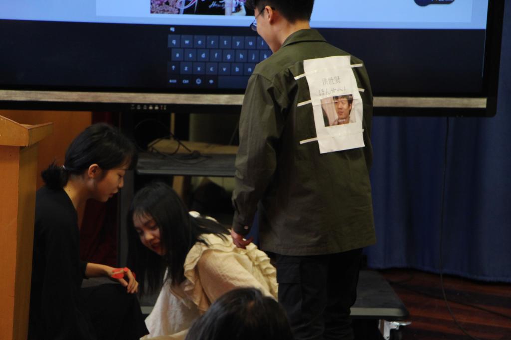 大会分为两个部分,分别是个人发表和小组表演。个人发表为限时一分钟的日语演讲,有朗读诗歌的,有播报新闻的,还有演讲自己写的随笔。深情的诗歌朗诵《伴你左右》,感动了评委和在场观众。随笔《我的故乡》,自然流露了学生对家乡的思念之情。小组表演的形式不限,有日语配音,日语短剧表演,还有日语歌曲演唱等各种各样的表演形式,形式丰富多彩,内容有趣充实,全体同学都乐在其中。日语版小猪佩奇《泰迪与野餐》的配音,模仿者的声音神似程度,让观众惊叹不止;日语版《唐伯虎》引来阵阵笑声。
