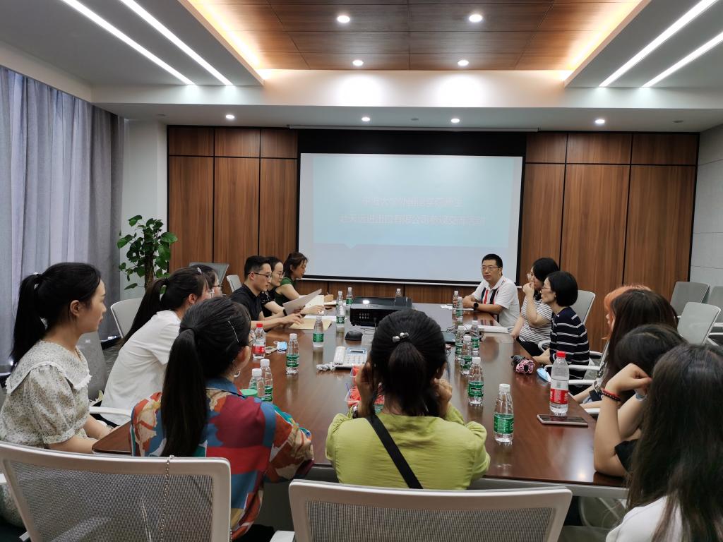 学院师生与公司代表在会议室举行座谈,方军林详细介绍了公司的发展历程、现状和前景,并以学长身份鼓励同学们心怀感恩、踏实奋进。性吧