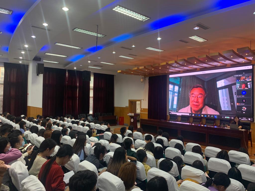 师生做主题为“疫情后看学习外语做翻译的时代意义”的讲座。