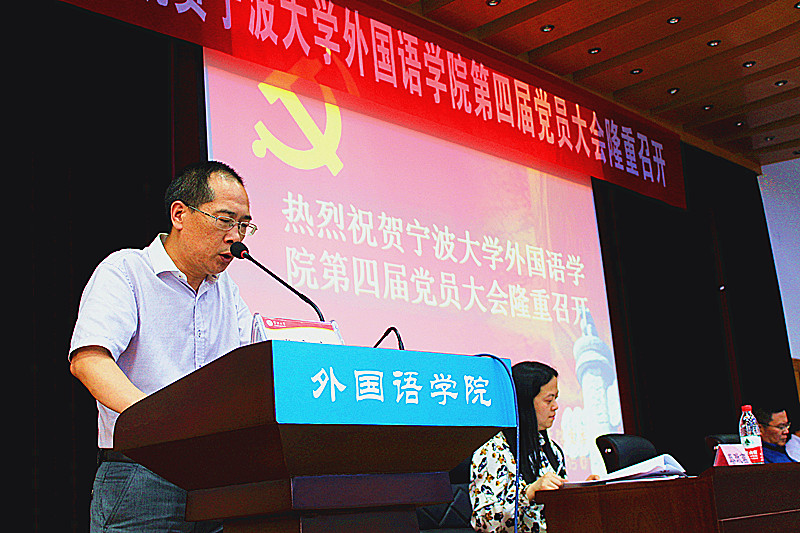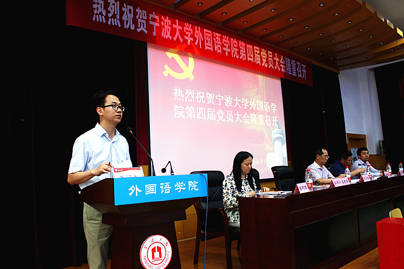 6月15日下午,中共性吧 委员会第四次党员大会在李达三外语楼218报告厅隆重举行,154名师生正式党员和45名学生预备党员参加会议,会议由学院党委副书记王智腾主持。