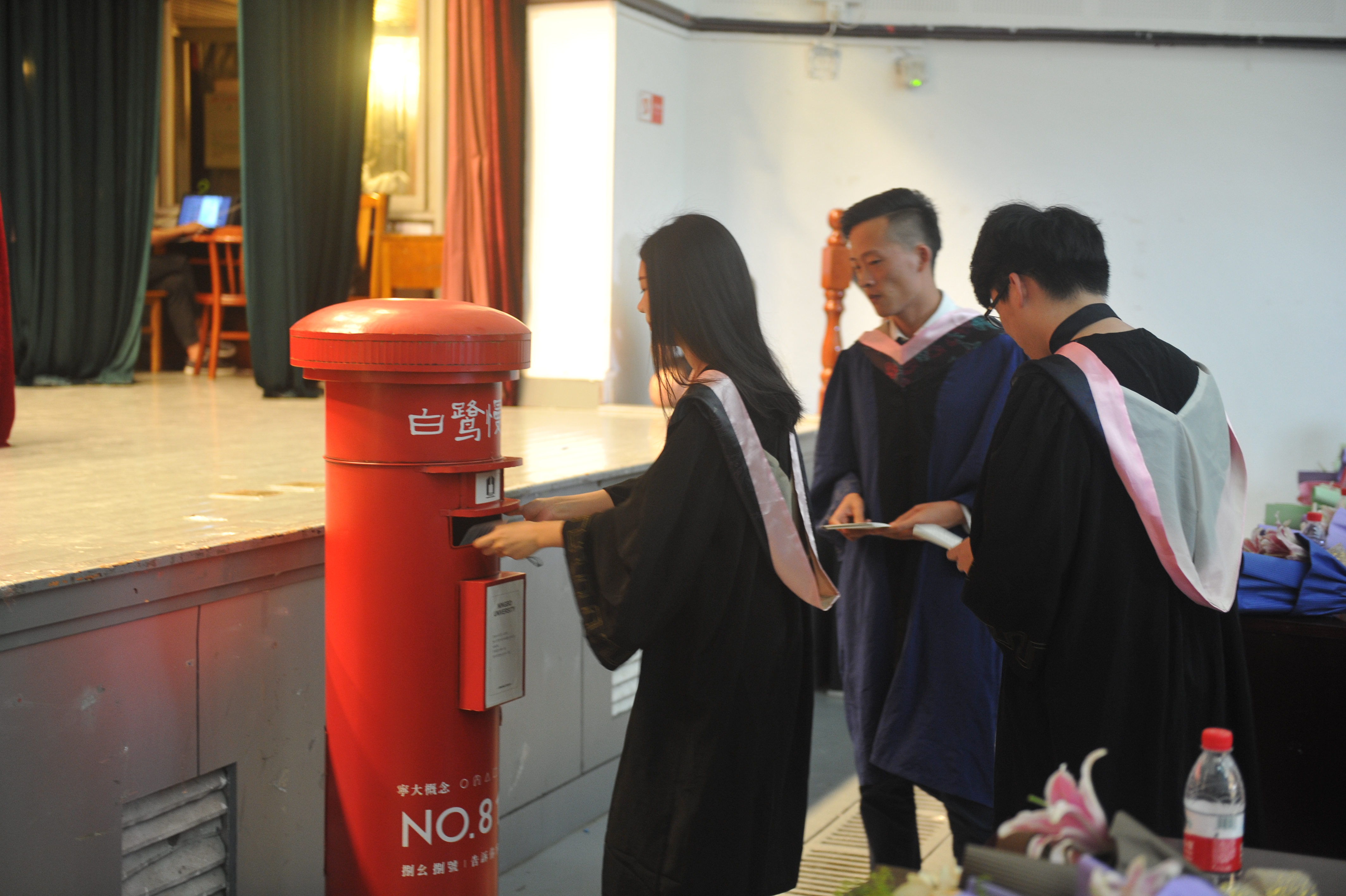 此后,各班毕业生代表向班主任老师献花。365名毕业生起立,向老师深深鞠了一躬。英语132班班主任曹红霞老师和日语131班班主任宋姗姗老师作为班主任代表发言,表达对毕业生的祝贺和对未来的美好祝愿。本次典礼特设“慢递邮箱”活动环节,学院将毕业生投入慢递邮箱的信一年后寄给毕业生们,以增进母校与校友的联系,再次回忆校园生活的美好。紧接着,院长屠国元致辞,他对同学们提出了三点建议:一是要笃实。希望大家继续秉承对国家的那份赤诚之心,对社会的那份责任心,在自己的角色里、岗位上脚踏实地,用中国梦激扬青春梦。二是要诚信。传承做人贵在清白,做事必须认真,做学问要敢于好高骛远,善于实事求是的宁大“三做”精神。三是要达雅。无论在什么地方、在做着什么工作,始终要有一颗追求、实现高尚而美好品德的本心,做一个高尚的人。