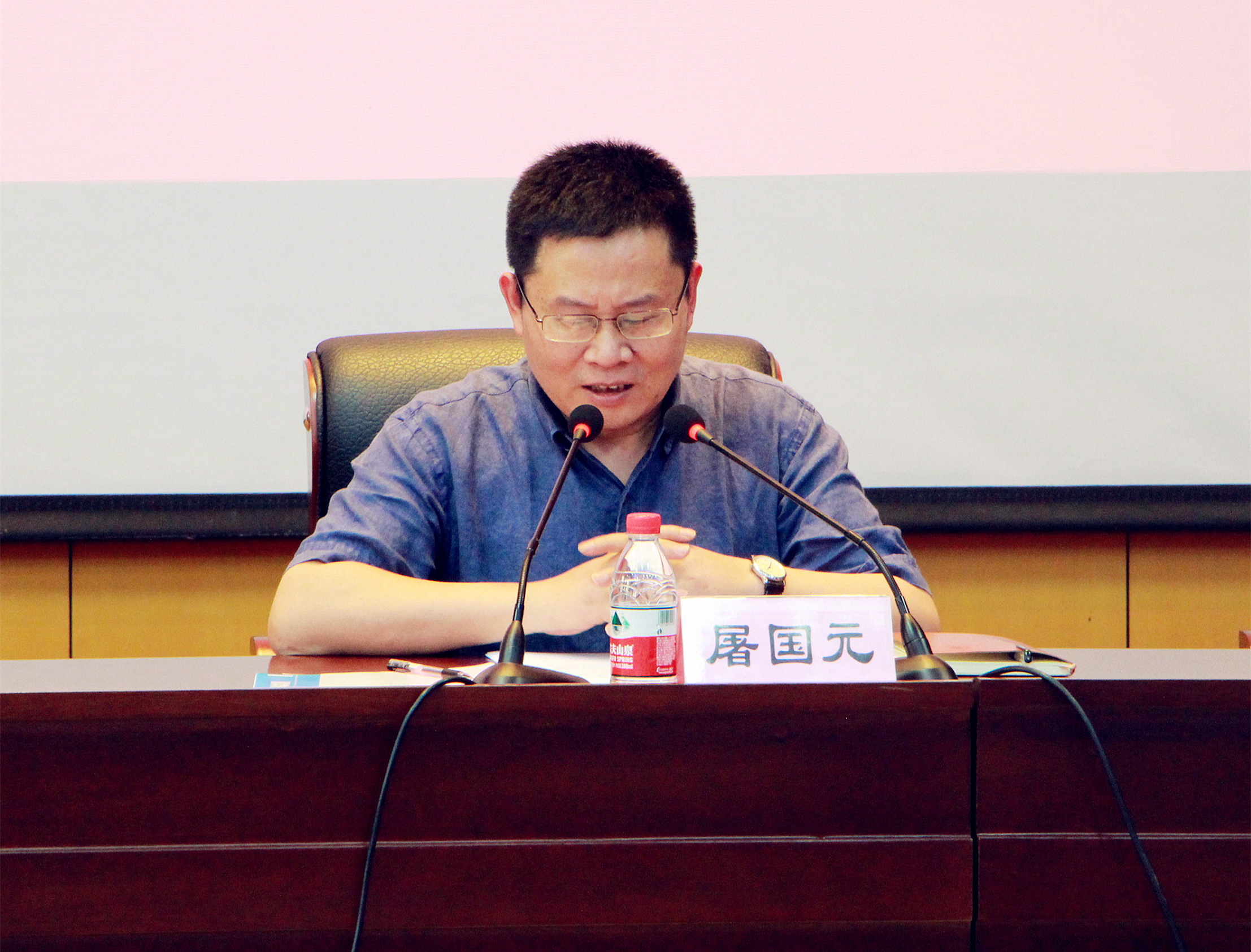 院领导见面会上,院党委副书记王智腾就学院领导和出席会议老师做了介绍。院长屠国元发表对新生的寄语和期盼,并给同学们提出了几点建议:一是尽快融入性吧