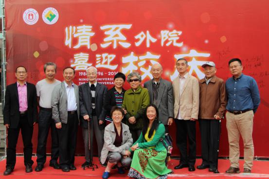 9点,随着原外语系老书记张燮泉老师的到来,“我爱外院”校友返校日签名拍照活动正式拉开了院庆的序幕。校友们在签到处写下对母校浓厚的、带有爱意祝福。然后移步树立在外语楼门口的“情系外院,喜迎校庆”的喷绘前拍照留念。拍照结束后,志愿者们将洗出的照片双手递给学长学姐们,并陪同他们重走宁大校园,并且来到第一餐厅重温宁大的味道。
