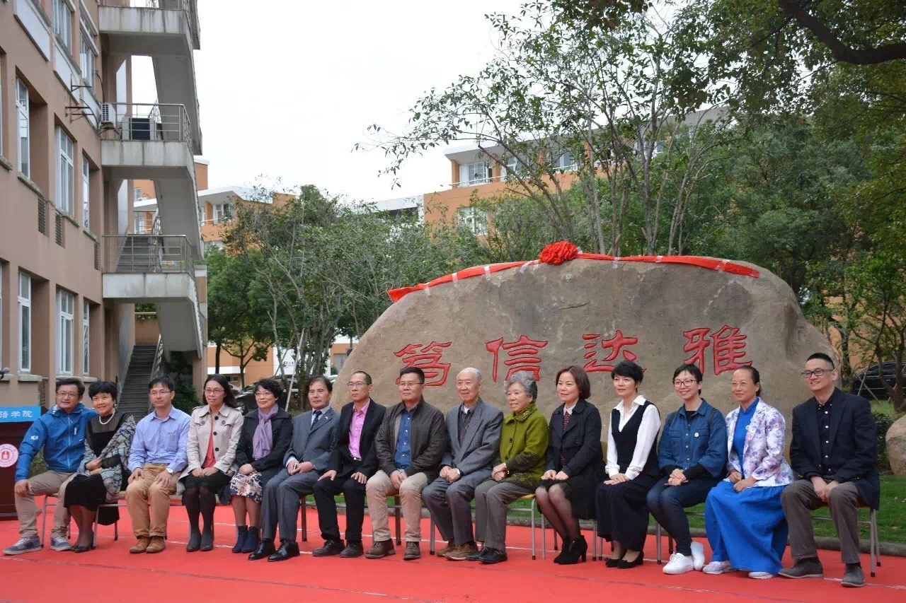 “笃信达雅”院训石揭幕仪式在学院小广场举行。学院领导班子成员、原外语系系主任胡荣昌、原外语系退休教师冯韵芳、各届校友代表以及学院师生代表参加揭幕仪式。院长屠国元致辞,介绍“笃信达雅”院训的来历和寓意并对捐赠院训石的学院1992级英语全体校友表示感谢;学院党委书记段汉武介绍了院训石捐赠过程;1992级英语校友胡英杰代表全体校友发言;最后屠院长、段书记以及两名92级英语的校友代表为“笃信达雅”院训石揭幕,并在院训石前合影留念。