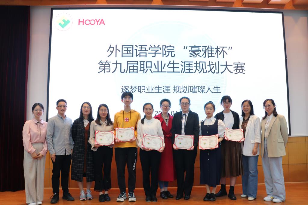 “豪雅杯”第九届职业生涯规划大赛在李达三外语楼218报告厅举行。校企合作单位宁波豪雅进出口集团有限公司人力资源部经理孙云旗、豪雅商学院院长助理王燕、性吧