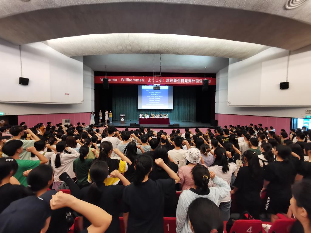 2019级研究生代表丁维鑫和2020级本科生代表王雅帆分别进行了发言。最后,新生见面会在全院新同学入院宣誓中结束,“谨记实事求是、经世致用之校训,秉承笃信达雅之院训,为讲好中国故事、传播好中国声音贡献青年力量!”