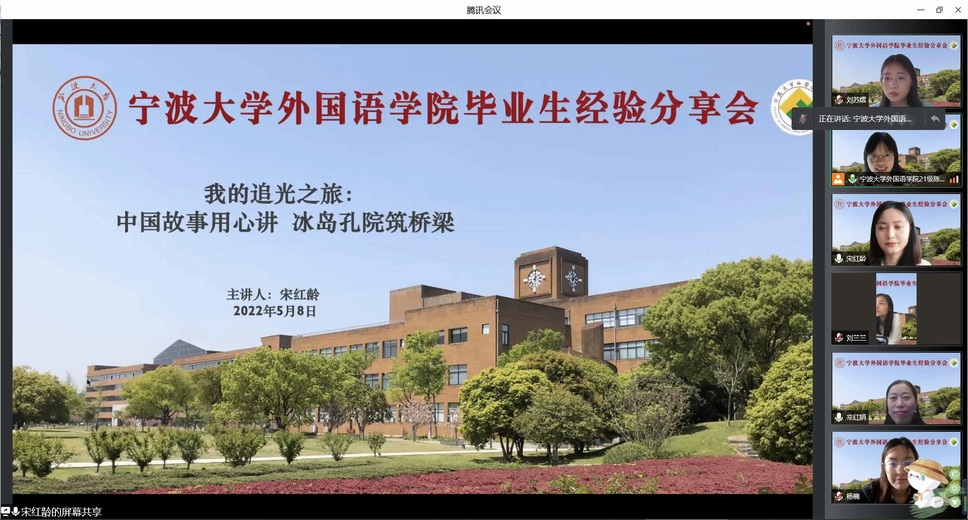 2016级英语笔译专业硕士研究生、冰岛大学北极光孔子学院汉语教师、冰岛大学2021级英语语言学博士生宋红龄受邀为学院本科生和研究生带来一场题为“我的追光之旅:中国故事用心讲,冰岛孔院筑桥梁”的线上经验分享会。性吧