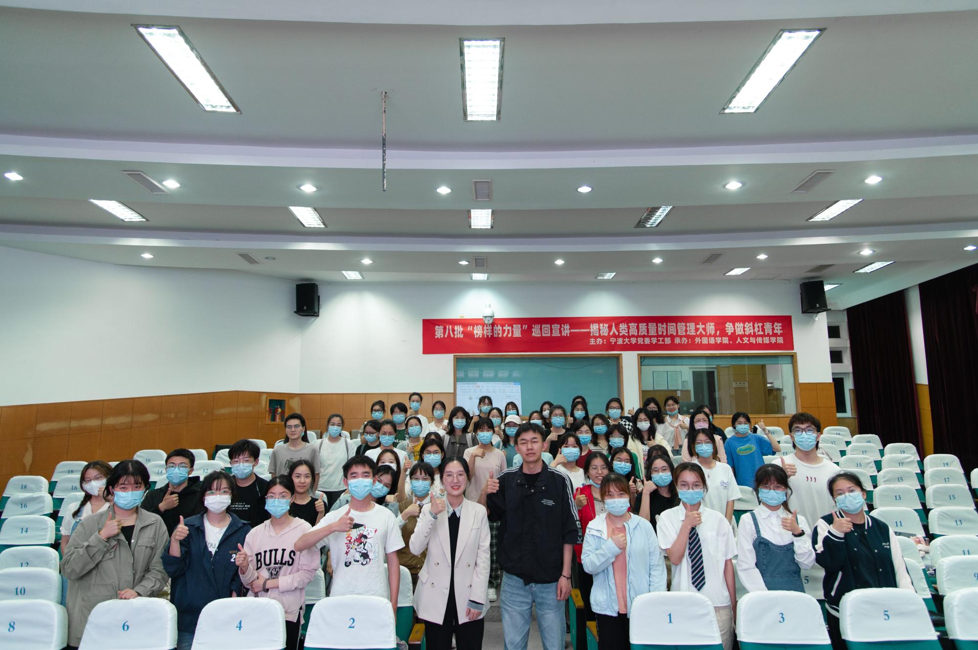 党委学工部牵头成立了第八批“榜样的力量”宣讲团,阳明创新班英语专业的林淼如便是其中一员,她以优异的成绩保研至北京外国语大学,同时还是国家奖学金获得者、“四知”精神的践行者,立志用外语讲好中国故事。