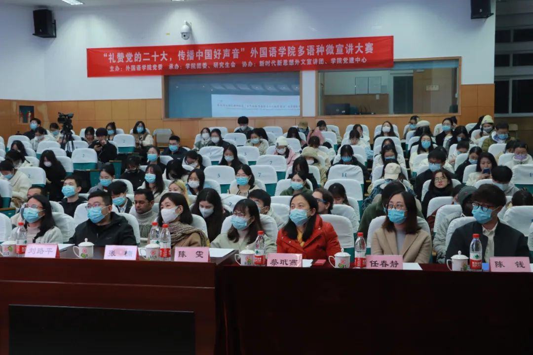 12月9日晚,“礼赞党的二十大 传播中国好声音”多语种微宣讲大赛决赛在李达三外语楼举行。性吧