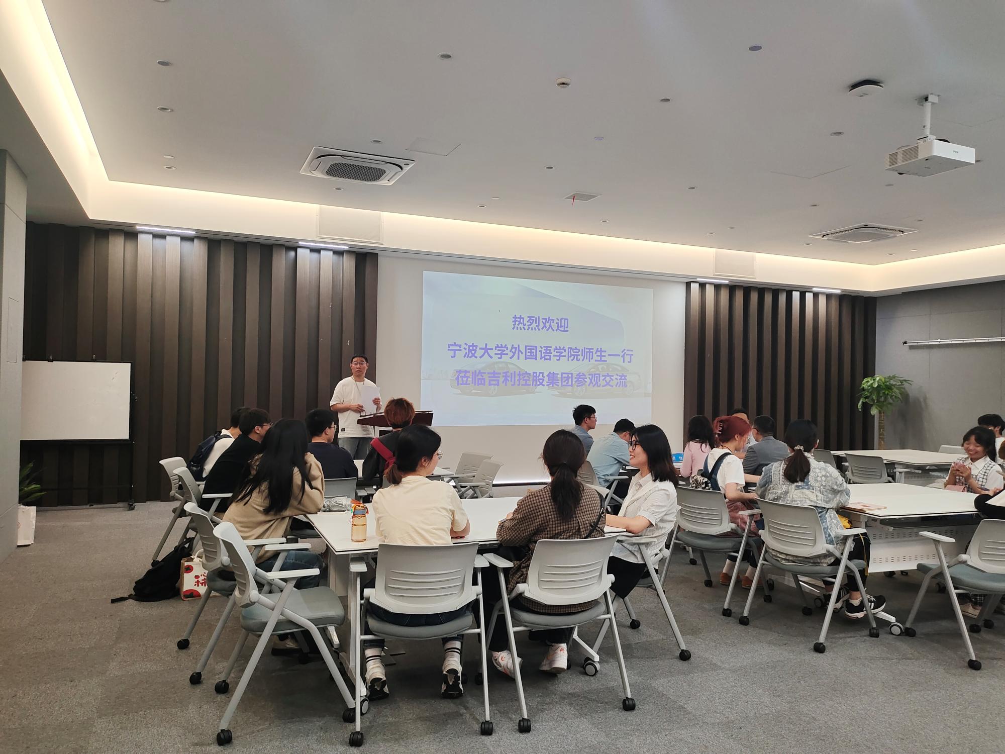 师生赴浙江吉利控股集团走访交流。学院副院长张陟、党委副书记胡佳、英语系教师崔振峰、就业辅导员与20余名本硕学生参加此次活动。性吧