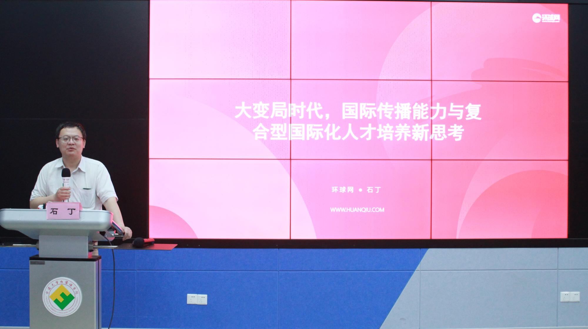 石丁总编辑多年奋战在媒体一线,分享了自身对于大变局时代国际传播能力与复合型国际化人才培养的新思考。他提出,国际传播能力已成为大国竞争的最重要武器之一,成为“影响国运的关键性因素”,是“全球化的中国经济力量倍增器、品牌放大器、完备防御器”,中国高等教育进入全球化竞争新阶段,“国际传播能力将成为中国高校全球化竞争的助推器”。