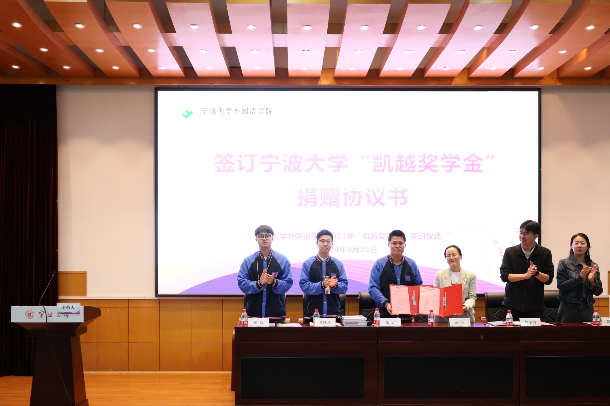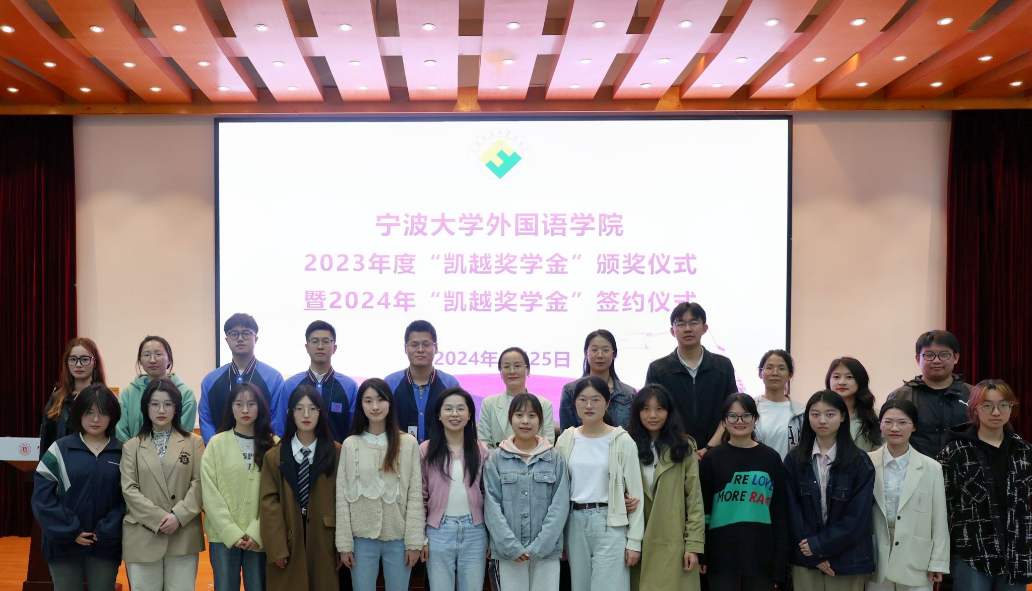 2023年度“凯越奖学金”颁奖仪式暨2024年“凯越奖学金”签约仪式在李达三外语楼218报告厅举行。凯越集团总裁助理、营运事业部董事总经理朱吉,人事部副经理戴陟遥,人事部经理助理陈钱,性吧