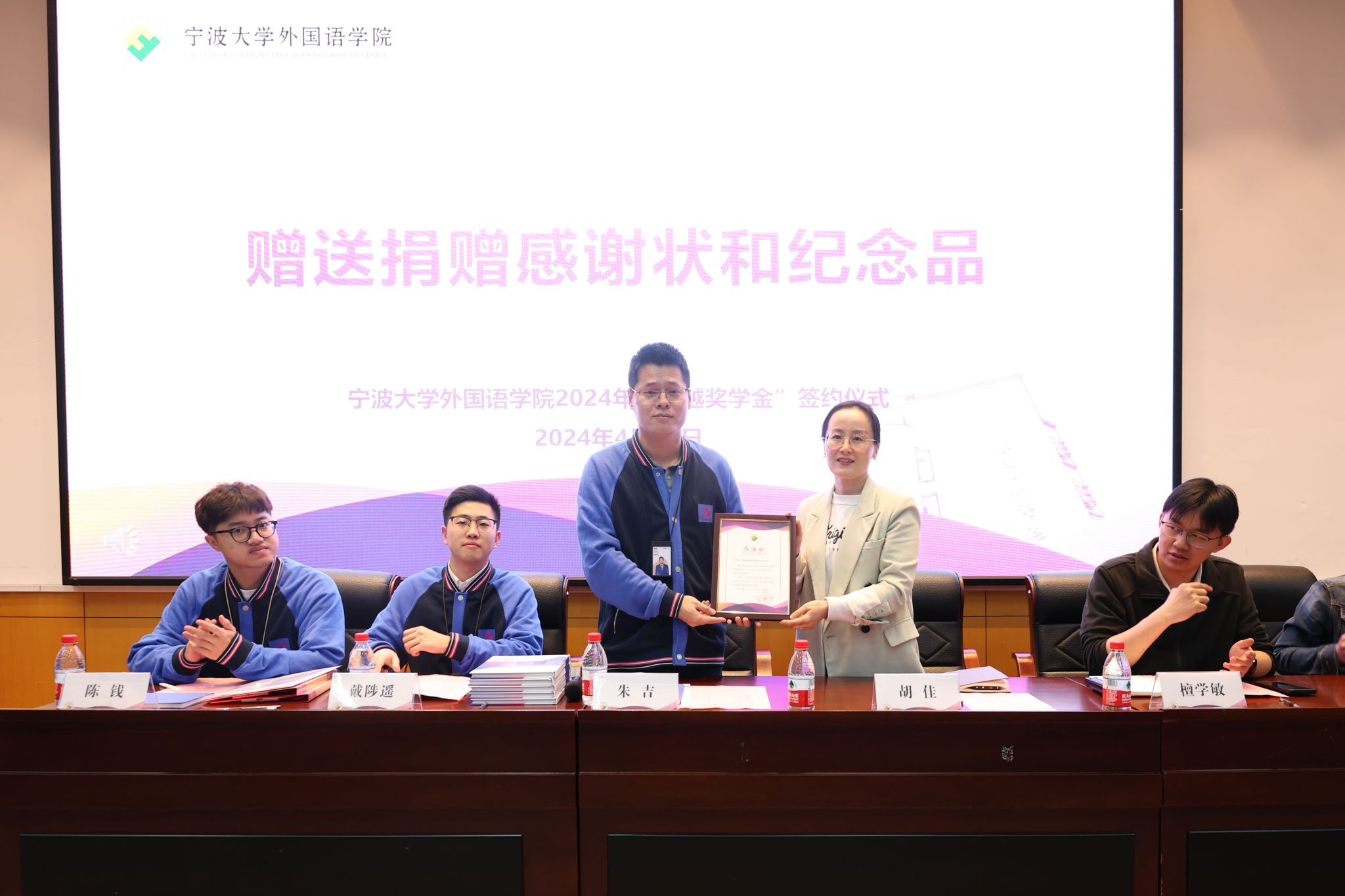 最后集团总裁助理朱吉介绍了凯越的发展历史及公司概况,表示“凯越奖学金”的设立旨在支持和鼓励在校学生勤奋学习,帮助更多学子实现梦想,助力外语人才的培养。他希望同学们刻苦锤炼本领,奋发展现作为,并欢迎更多的宁大学子加入凯越集团。