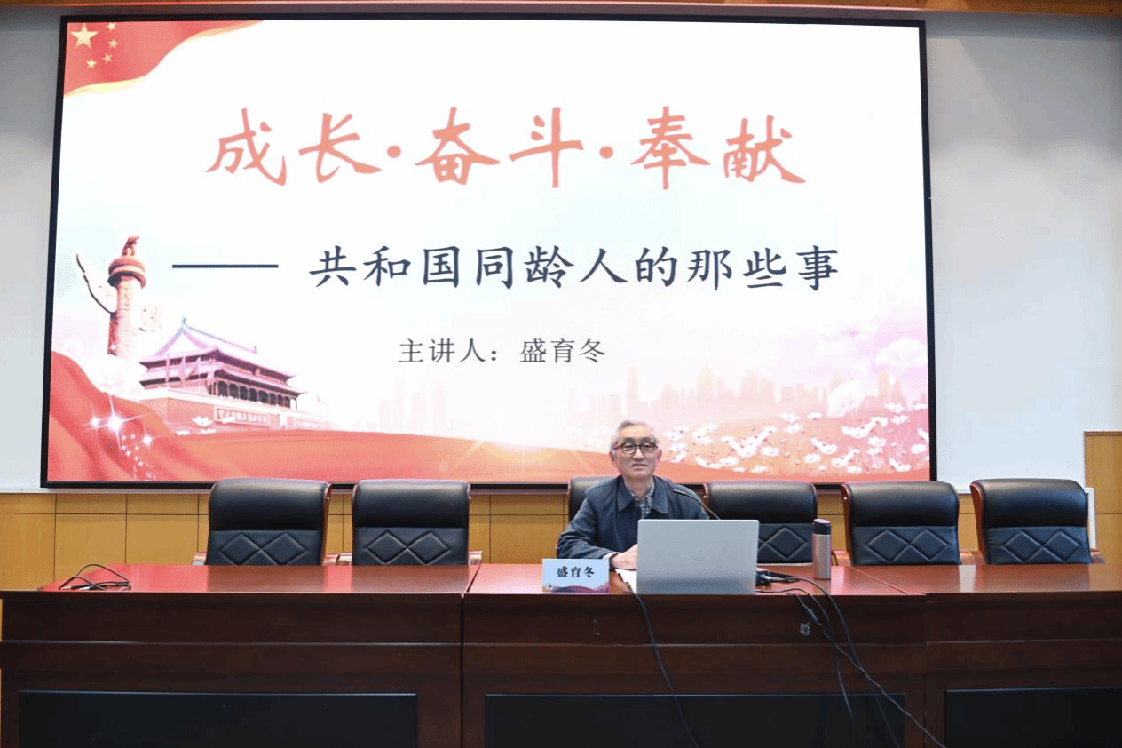 原党委书记盛育冬老师为学院分党校学员讲授题党课“成长·奋斗·奉献——共和国同龄人的那些事”。51名预备党员和57名发展对象参加学习。