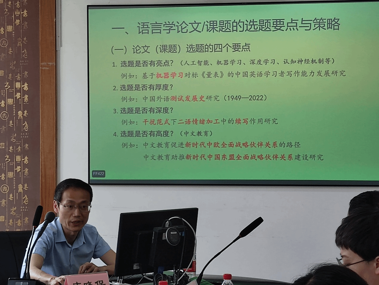 副院长、外国语言研究所所长、认知神经语言学实验室主任韦晓保教授在422会议室以“语言学论文(课题)之选题策略、设计与方法”为题,为性吧