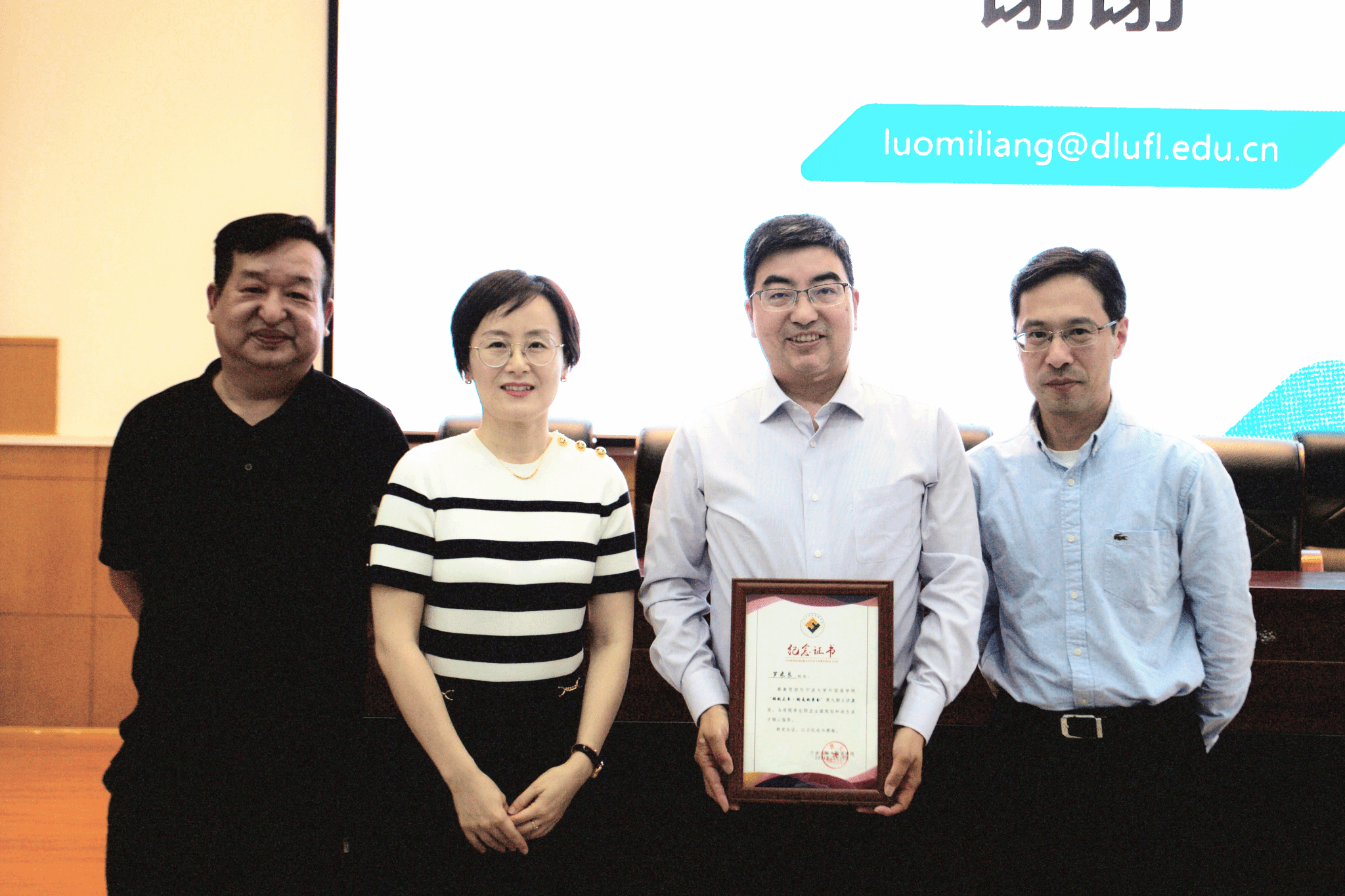 学院党委副书记胡佳在讲座结束后为罗米良教授颁发了纪念证书,感谢其对母院学生专业学习成长、职业生涯规划的热心指导。在本次活动中,优秀的校友们倾情分享了日语专业学生的职业生涯规划和专业学习探索的经验,对广大同学提升自身的职业认知、改进专业学习方法等探索大有裨益。性吧