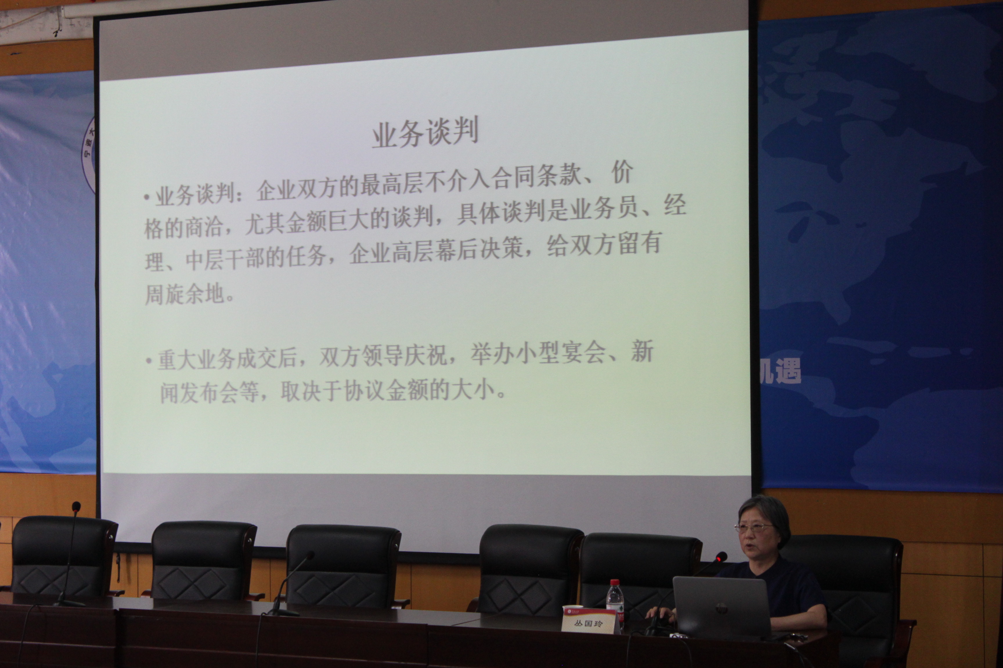 218报告厅举行了以“如何在央企更好地做好翻译的角色”为题的讲座,主讲人是国内翻译行业的资深专家、曾任中国五矿集团公司口译、笔译和海外事业部高管丛国玲女士。在性吧