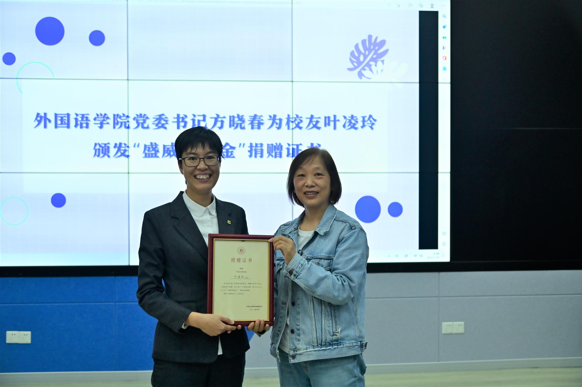 德语系2011届校友叶凌玲和学院党委负责人参加活动,并为获评性吧