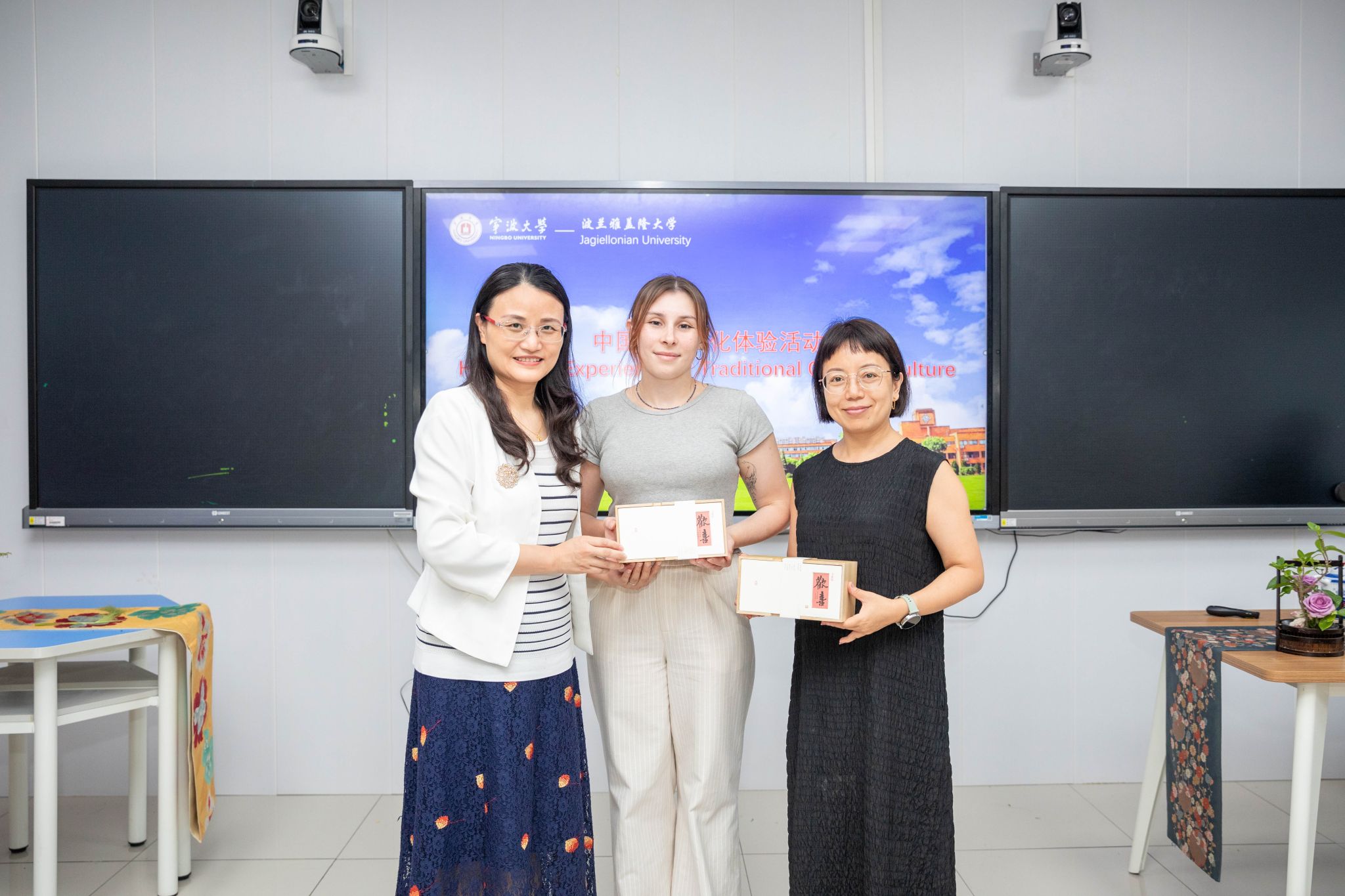 在为期一周的交流活动中,为促进波兰学生深入体验中国传统文化的精髓,性吧 辛红娟教授主讲题为“全球视野中的老子与《道德经》”的讲座,还与中国学生共读了《三字经》,让大家感受了中国传统文化的独特魅力。期间,波兰学生还走进 “诗情湖西”(月湖金汇小镇)、屠呦呦旧居和南塘老街,体验了非遗传统文化项目——漆扇制作和宁波传统美食,学习了中国科学家精神,并与宁波城投的青年代表进行了面对面的交流。